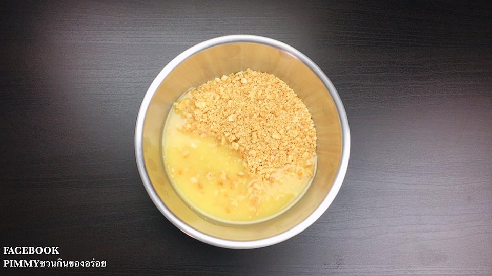 แล้วเทส่วนของครีมชีสลงไป