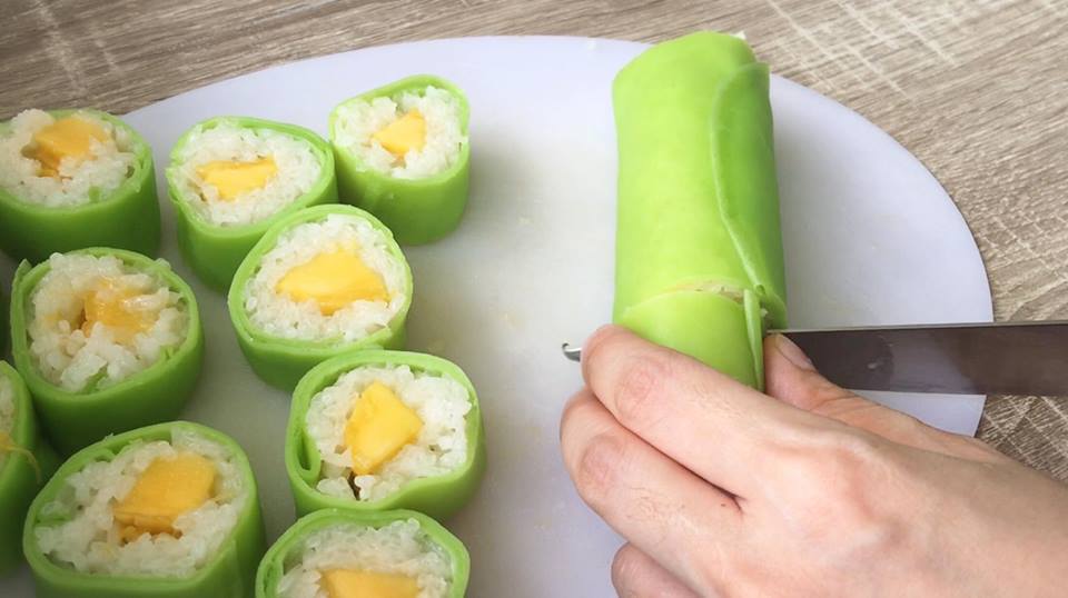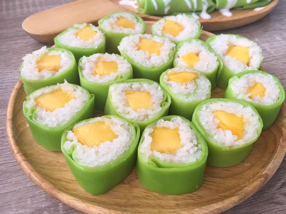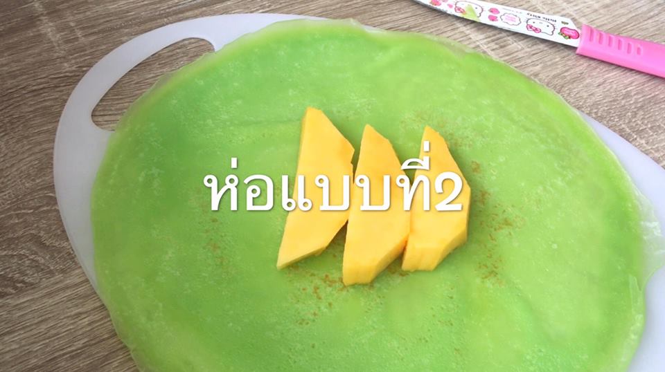 เก็บไว้ทำกินที่บ้านกัน “เครปใบเตยข้าวเหนียวมะม่วง” เมนูของหวานแสนอร่อย สวยงาม น่าทานมาก