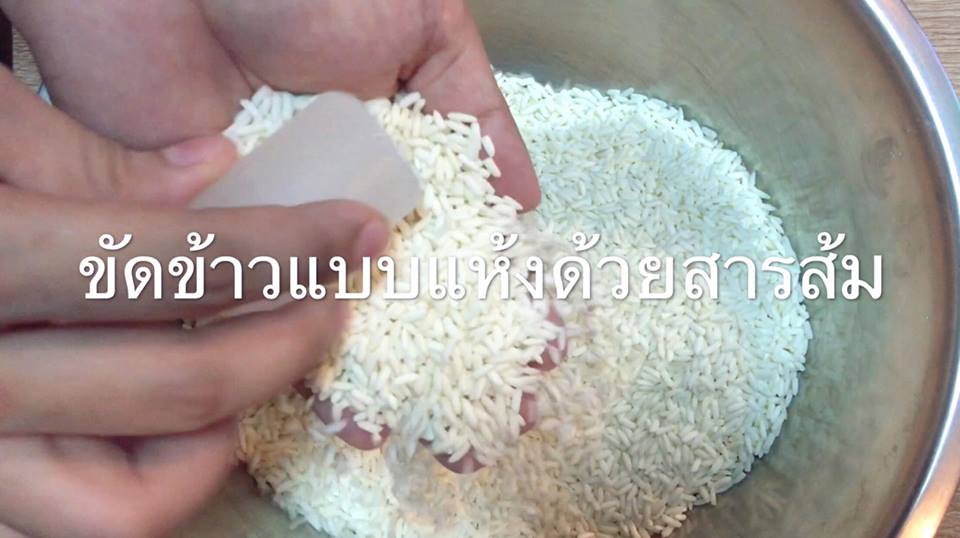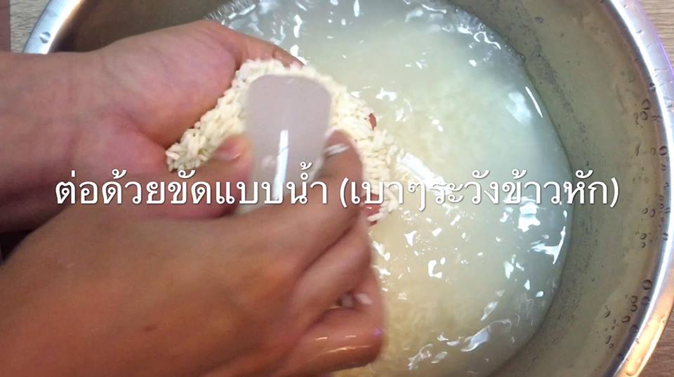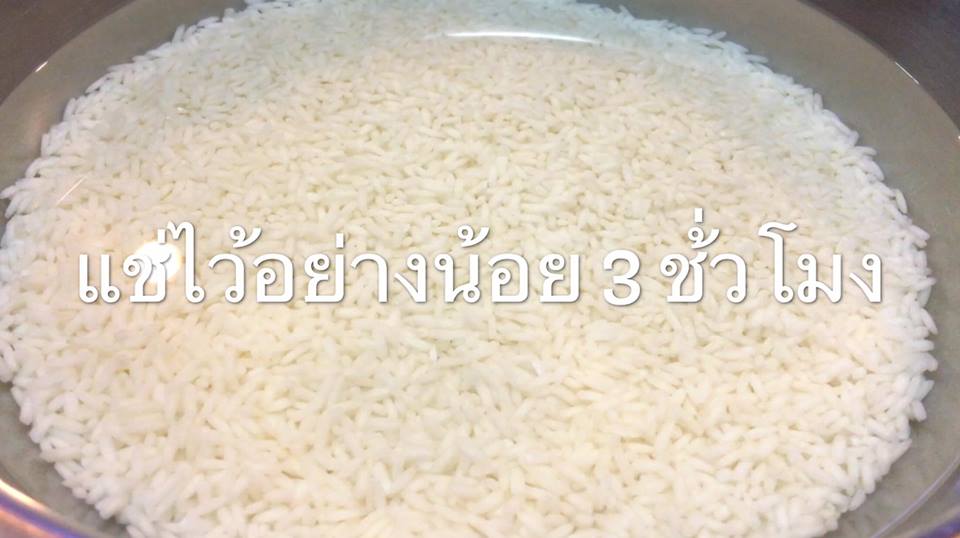 1.นำสารส้มไปขัดข้าวเบาๆ ขัดแบบแห้ง และต่อด้วยขัดแบบน้ำ จนยางข้าวออกน้ำจะขุ่น ก็ทิ้งไว้สักครู่ แล้วไปซาวน้ำจนใส แช่ทิ้งไว้อย่างน้อย 3 ชั่วโมง รอบนี้เราแช่ 1 คืนค่ะ (สารส้มจะช่วยให้ข้าวมีเม็ดขาวใสเวลาไปมูลข้าวใสเรียงตัวสวย)