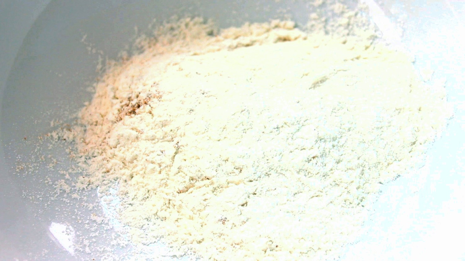 เทแป้งทอดกรอบลงในภาชนะผสม