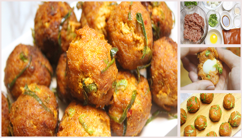 • หากมีเนื้อทอดมันจำนวนมาก สามารถนำไปห่อไข่ไก่ต้มแทนไข่นกกระทาได้