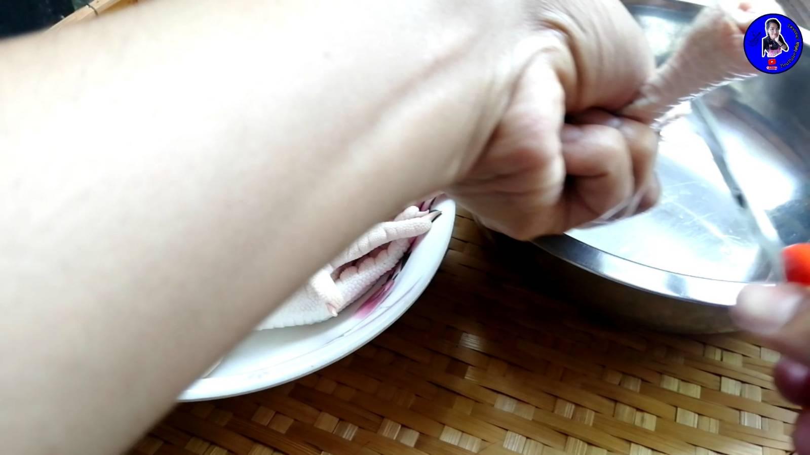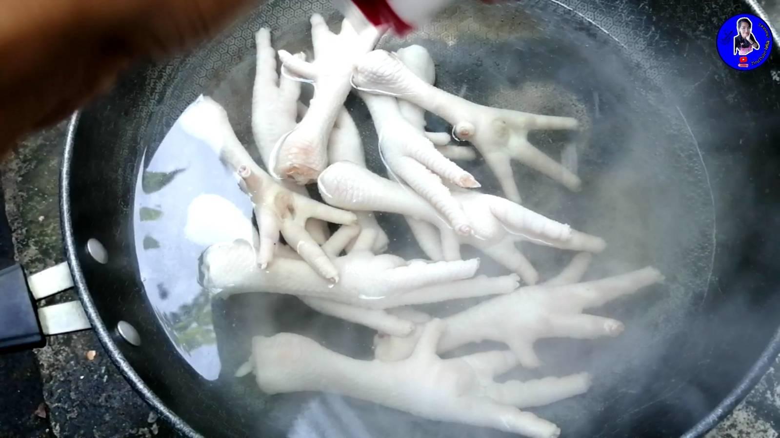 นำตีนไก่มาตัดเล็บ ล้างน้ำทำความสะอาด และนำไปต้มให้เปื่อย