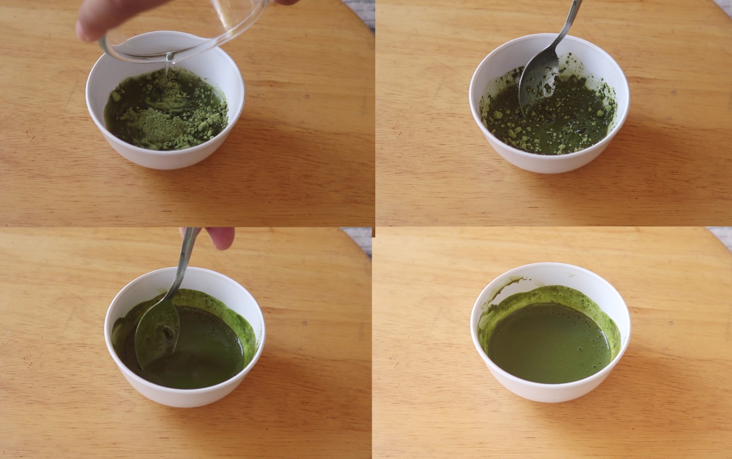 7.ผสมผงชาเขียวกับน้ำร้อน(พักให้เย็นลง)