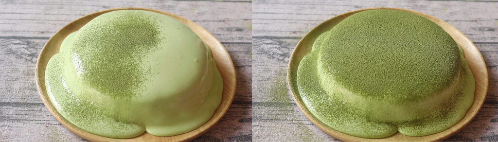 11.โรยด้วยผงชาเขียว ร่อนให้ทั่วเค้ก