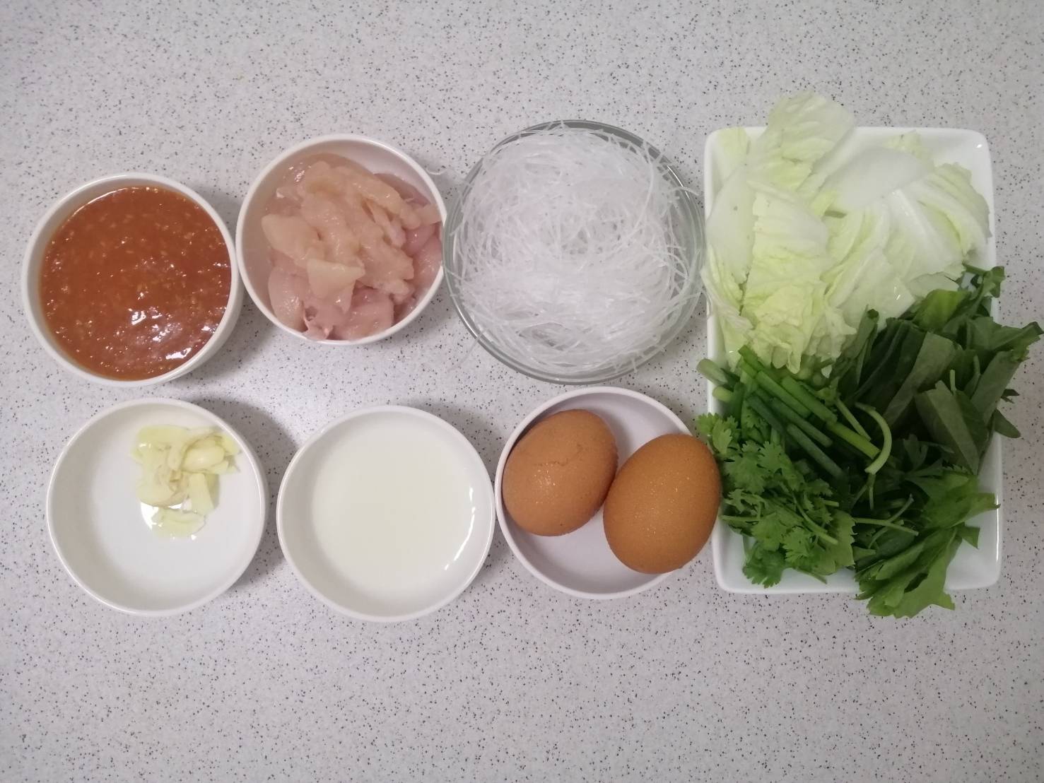 ผักต่าง ๆ : ผักกาดขาว ผังบุ้ง ขึ้นฉ่าย ต้นหอม ผักชี (หรืออื่น ๆ ตามชอบ)