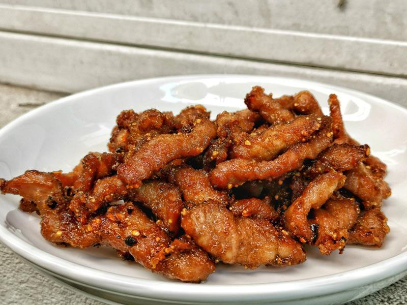ตักขึ้นสะเด็ดน้ำมัน จัดใส่จาน กินกับข้าวสวยหรือข้าวเหนียว ฟินมาก ๆ