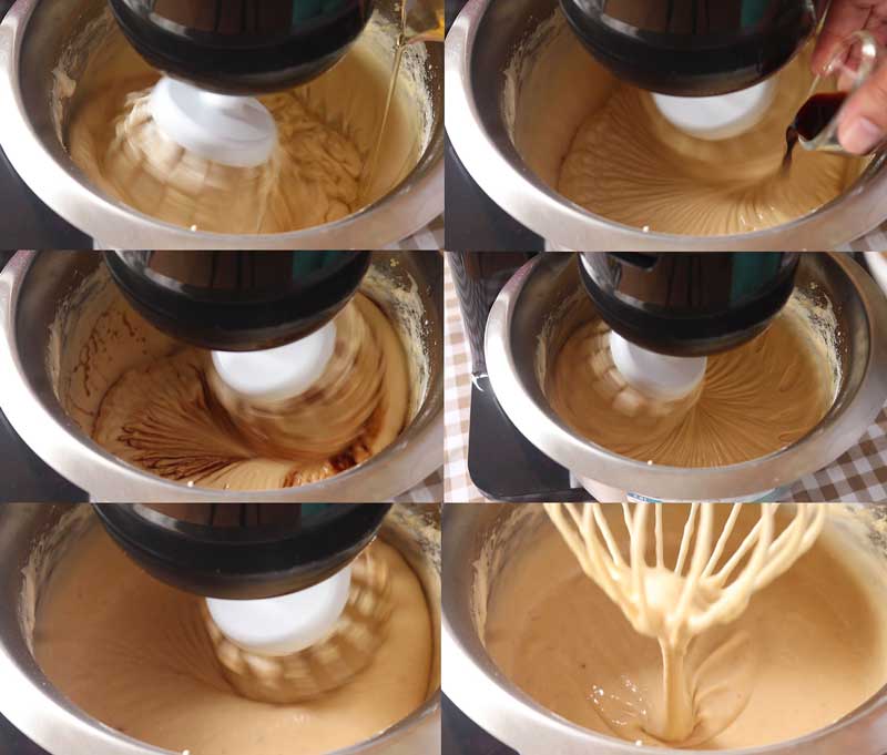 ◇ เติมน้ำมันรำข้าว กลิ่นกล้วยหอม หรือกลิ่นวานิลลา ตีจนเข้ากัน