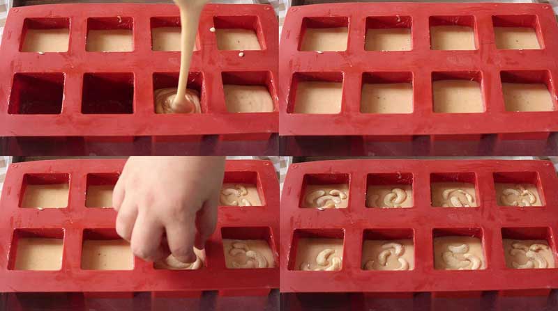 ◇ ทาเนยที่พิมพ์ ใส่เม็ดมะม่วงหิมพานต์ นำไปอบที่อุณหภูมิ 180 องศาเซลเซียส ใช้ไฟบน-ล่าง เป็นเวลา 25-30 นาที น่ากินไหมเอ่ย ลองทำกินดู