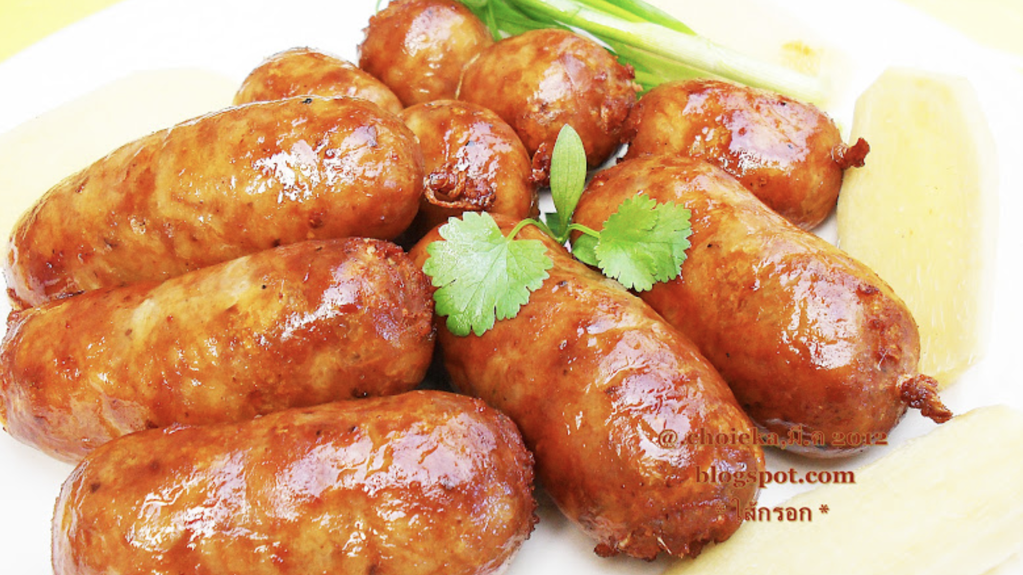 ใส้กรอกเป็นเมนูที่ชอบที่สุดของที่สุด ถ้าวันไหนทำแล้วละก็กินเล่นใด้ทั้งวัน การทำก็ไม่ยาก มาทำกินกันเองดีกว่า อร่อยถูกใจ.ใด้ผักชี /ต้นหอมกำลังจะเพิ่งโตมาช่วยแต่งหน้า..