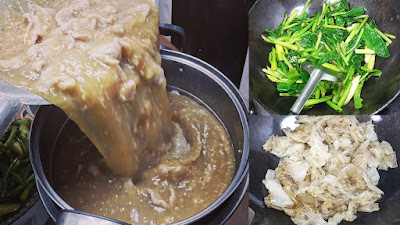 หมูหมัก / ไข่ไก่ / ซีอิ๊วขาว / ชูรส / น้ำตาล / กระเทียม / เต้าเจี้ยว / น้ำซุป / คะน้า / แป้งมัน