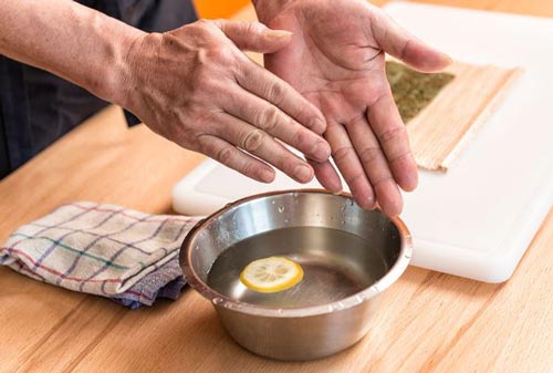 เป็นวิธีที่ทำได้ง่ายๆ โดยให้เทน้ำส้มสายชูลงไปในน้ำที่จะใช้สำหรับล้างหมึก กุ้ง ปลา ประมาณ 3 ช้อนโต๊ะ แล้วก็แช่ไว้ประมาณ 5 นาที หลังจากนั้นก็นำมาล้างน้ำสะอาด ง่ายๆแค่นี้กลิ่นคาวก็จะค่อยๆหายไป