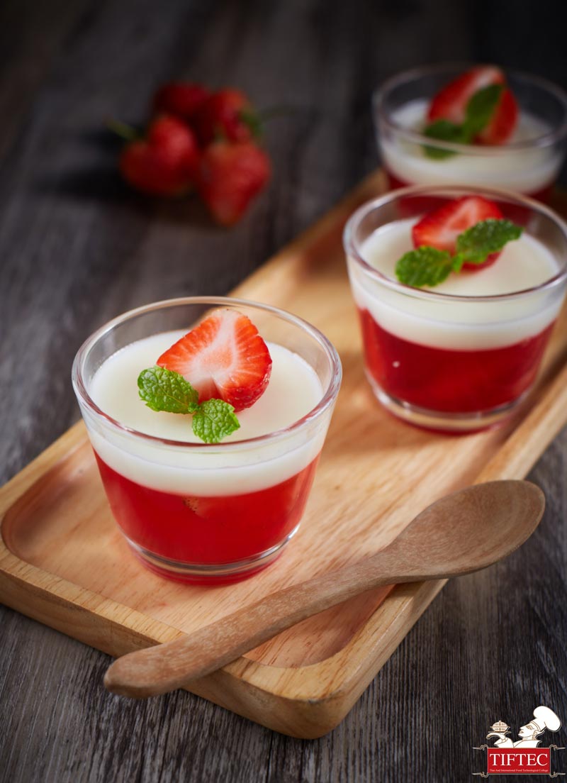 ผสมเซตตัว แต่งด้วยสตรอว์เบอร์รีสดและใบสะระแหน่ให้สวยงาม พร้อมเสิร์ฟ