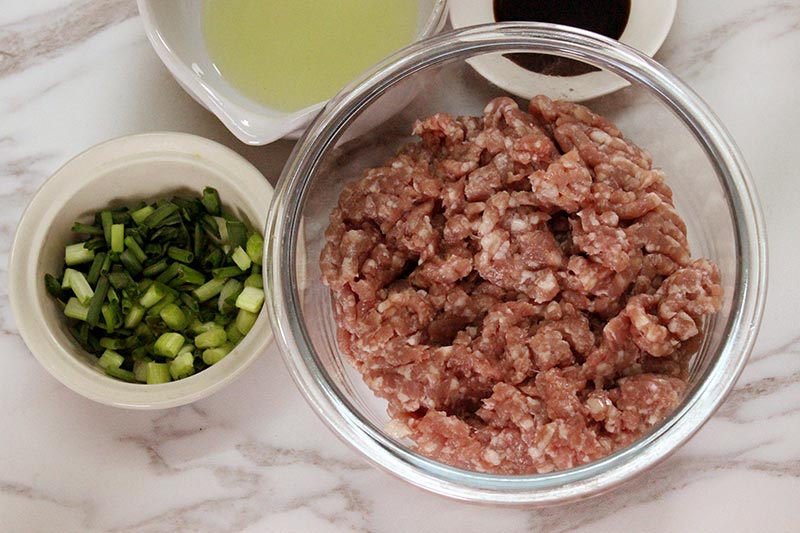 ► เตรียมเนื้อหมูบดใส่ภาชนะให้เรียบร้อย