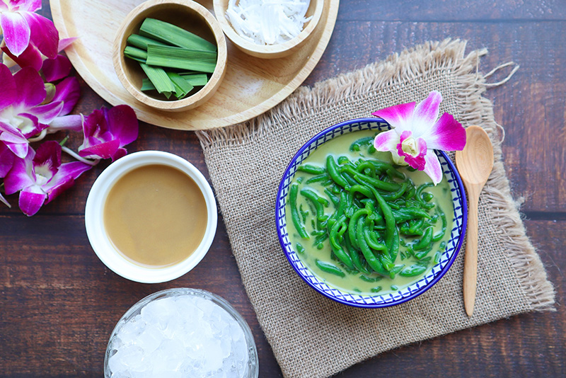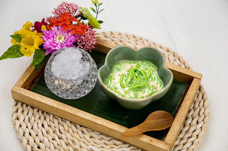 ลอดช่อง คือ ขนมไทยโบราณ ตัวขนมทำจากแป้งข้าวเจ้าใส่ใบเตยสีเขียวทานเย็นชื่นใจ