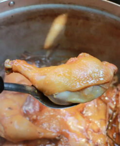 2.ปิดฝาไว้บนไฟ 15 นาที พลิกไก่กลับด้านเพื่อให้ไก่สุกเท่ากันและสีสวยเสมอกันทั่วทั้งน่ อ ง หลังจากนั้นตั้งไว้อีก 15 นาที