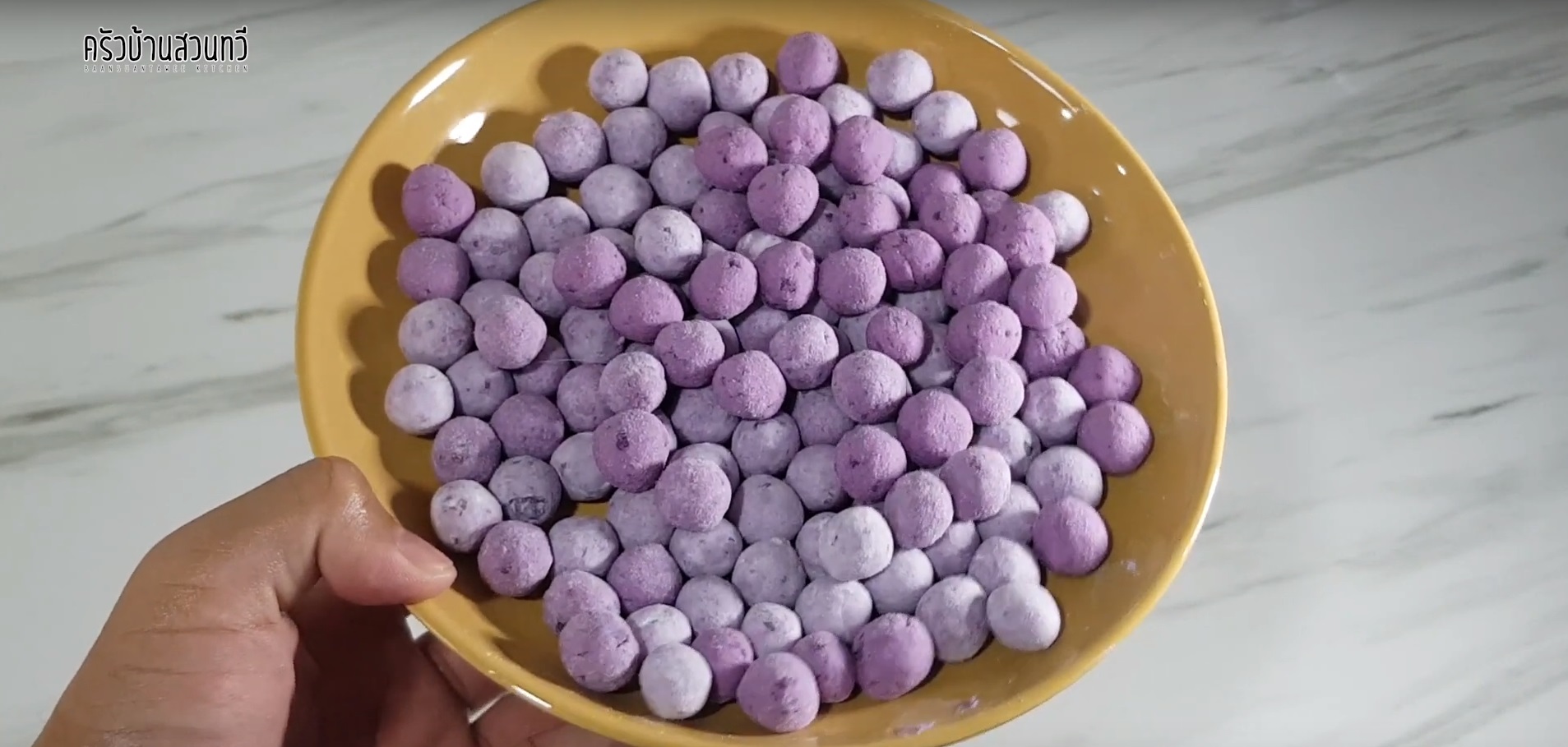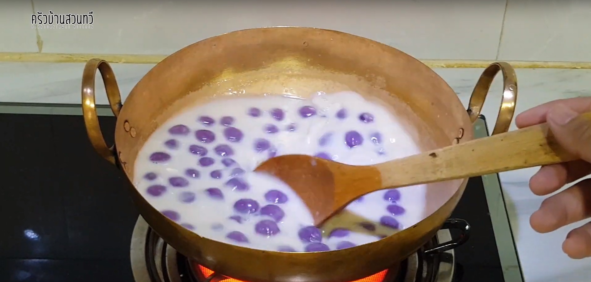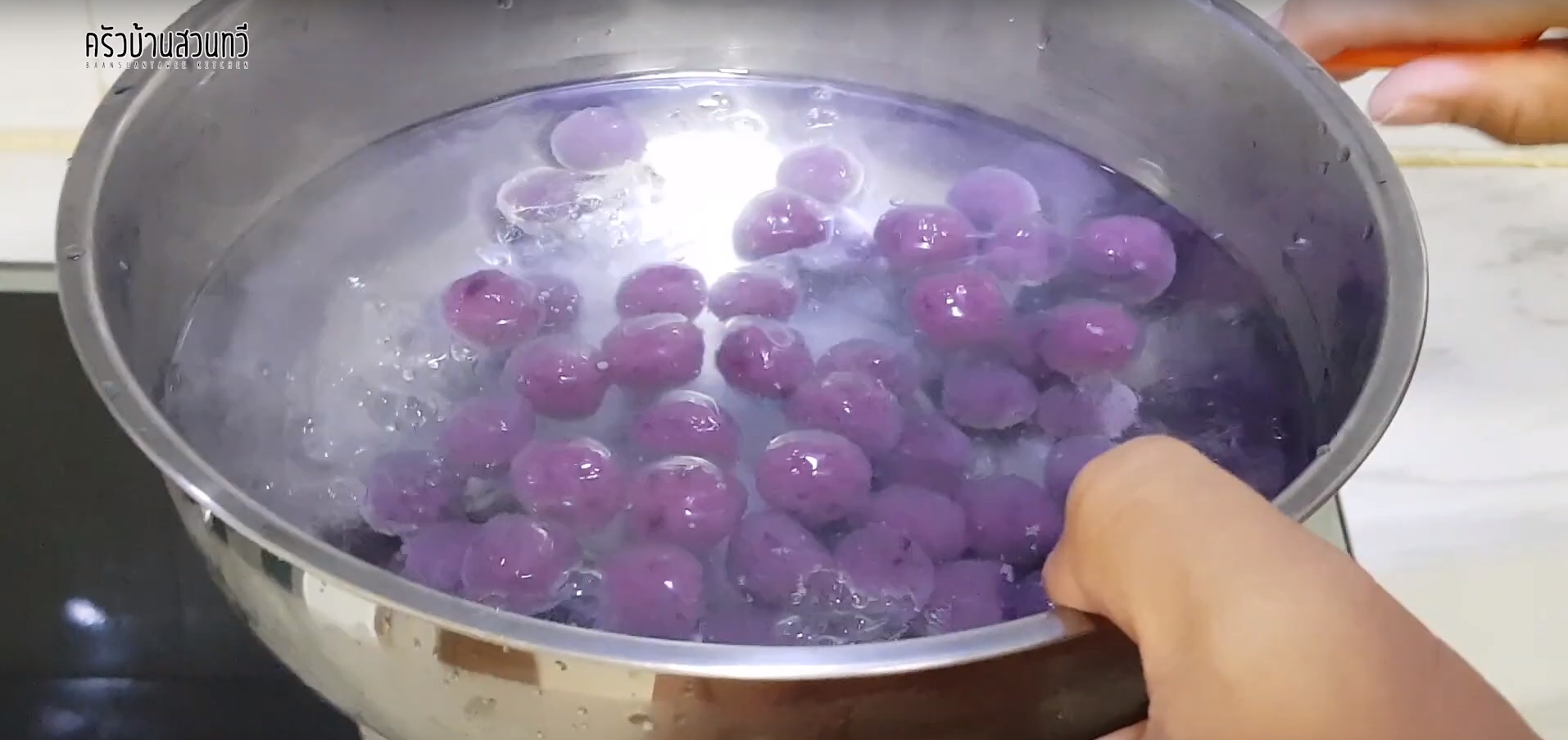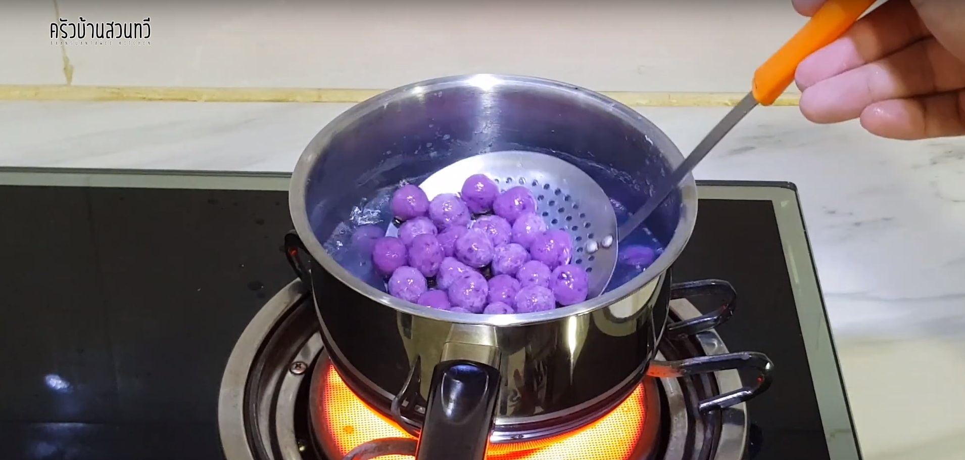 บัวลอยมันม่วงญี่ปุ่น เหนียวนุ่มหนึบ กินกับไข่หวานลาวาเยิ้ม สูตร โรงแรม 5 ดาว
