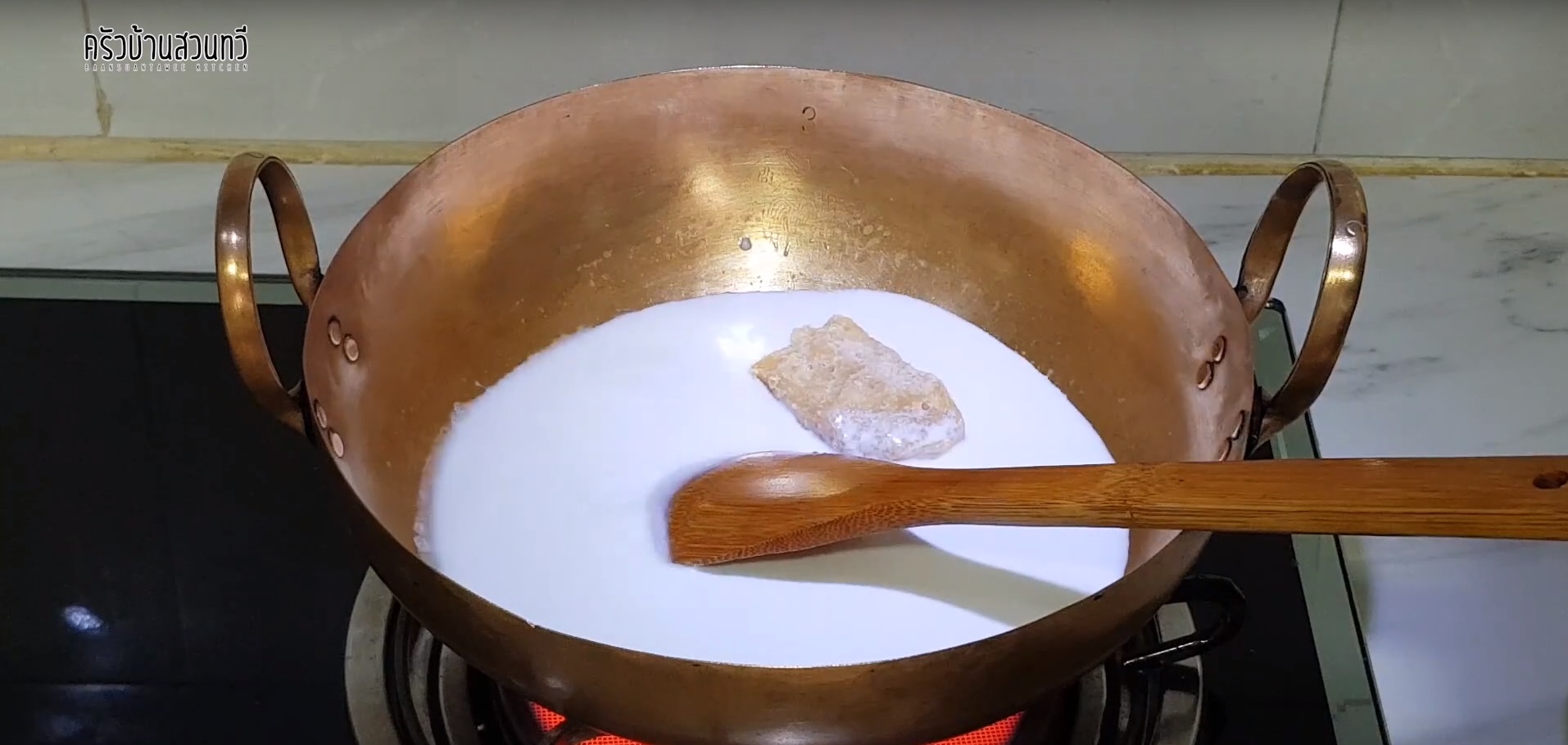 7.มาทำตัวน้ำกะทิกันต่อครับ เริ่มจาก นำกะทิใส่หม้อ เติมน้ำลงไปเล็กน้อย(ถ้าชอบข้นๆ ก็ไม่ต้องใส่นะครับ) จากนั้นใส่น้ำตาลปี้ป และเกลือลงไปครับ เคี่ยวจนทุกอย่างละลาย และกะทิเดือด
