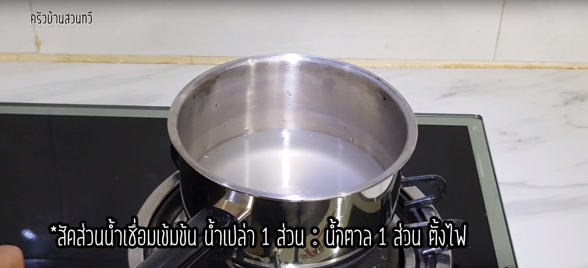 -น้ำเชื่อมเข้มข้น (ใช้น้ำ 1 ถ้วย ต่อ น้ำตาล 1 ถ้วย)