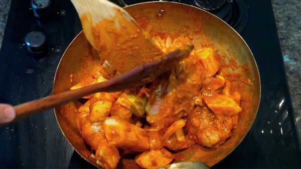 ◇ เมื่อไก่นุ่มแล้วปรุงรสด้วยน้ำปลา น้ำมะขามเปียก และน้ำตาลปี๊บ คนให้เข้ากันและชิมรสชาติ ถ้ารสชาติพอใจแล้วให้ปิดไฟพร้อมเสิร์ฟได้เลยค่ะ