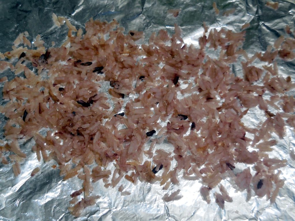 – ข้าวสุกตากแห้ง (วันนี้เราใช้ข้าวสุก ไปอบในเตาอบไฟ 180 C 20 นาที แทนข้าวตากค่ะ)