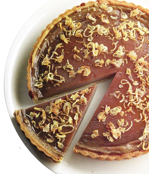 5. ใส่ส่วนผสมหม้อแกงเผือกลงในแป้งพายอบ นำเข้าเตาอบอีกครั้งที่อุณหภูมิ 350 องศาฟาเรนไฮต์ นานประมาณ 30 นาที หรือจนกระทั่งสุก พักไว้ให้เย็นสนิท โรยหน้าด้วยหอมแดงเจียว ตัดเป็นชิ้นตามต้องการ