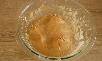 -ค่อย ๆ นวดแป้งให้เข้ากับน้ำเชื่อม น้ำเชื่อมจะหนืดมากใช้แรงเยอะพอสมควรในการนวดให้เข้ากัน แป้งที่นวดเสร็จแล้วต้องมีเนื้อสัมผัสคล้ายดินน้ำมัน คือไม่แห้งเกินไปจนปั้นไม่ได้ แต่ก็ไม่ได้เหลวเกินแบบคุกกี้โดว์ เอาเป็นว่าให้มีความรู้สึกว่าปั้นได้ แต่ถ้าออกแรงกดเยอะก็จะเละ ถ้าแป้งเหลวเกินไปอบออกมาแล้วหน้าจะไม่แตก เนื้อข้างในก็จะไม่สุกด้วย
