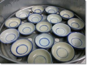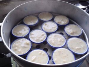 7.วางถ้วยตะไลในซึ้ง นำไปตั้งให้ถ้วยตะไลร้อนไว้ก่อน