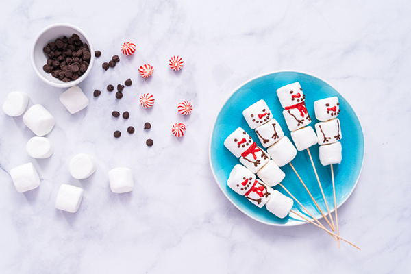 ชวนลูกรักมาช่วยกันทำเมนูมาร์ชเมลโล่ตุ๊กตาหิมะในวันหยุดนี้กัน จับมาร์ชเมลโล่เสียบไม้ให้สวยงาม เติมหน้าตาตามชอบ สุดท้ายแต่งผ้าพันคอด้วยผลไม้กวน
