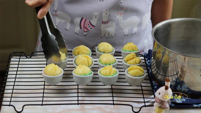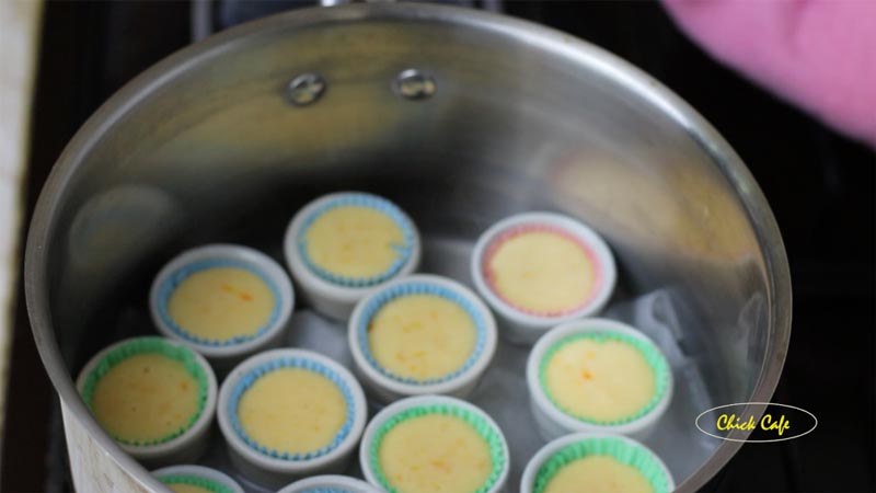 ◆ นำน้ำเปล่าประมาณ 1 ถ้วยใส่หม้อ หรือให้พอสำหรับนึ่งขนม ต้มน้ำให้เดือดแล้วปิดไฟก่อนนำแป้งใส่หม้อนึ่ง เรียงขนมลงไปในหม้อ