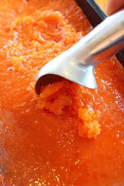 • นำไปแช่เย็นจนเริ่มเป็นเกล็ดน้ำแข็ง แต่ยังไม่ต้องแข็งมาก เราก็เอาออกมาคนครับ