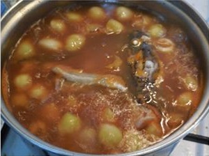 – รอให้เดือดอีกครั้ง ใส่เนื้อปลาลงไป พอปลาเริ่มสุก ใส่มะขามเทศ