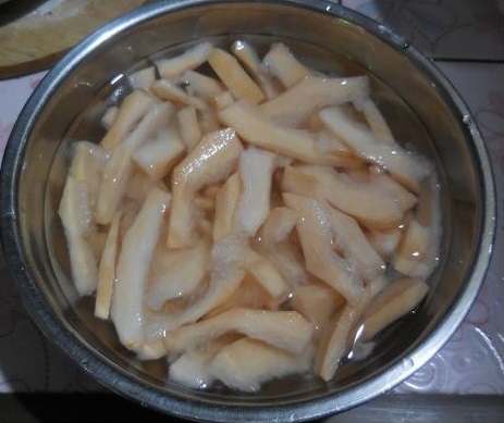 1.กระท้อน (หั่่นชิ้นเล็ก แล้วนำไปแช่น้ำเกลือ 15 นาที ใส่กระชอนพักไว้