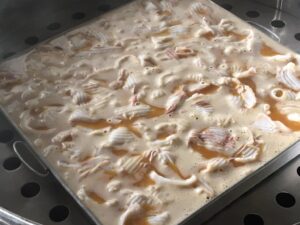 2.กะทิสำหรับทำตัวใส่เกลือ รสชาติให้ออกเค็มเลย แล้วราดใส่ข้าวเหนียว น้ำหนักรวมทั้งหมด=1.7กิโลกรัม