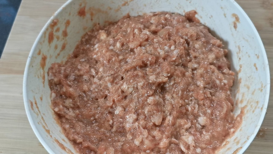 1. ปั่นเครื่องปรุงทั้งหมดให้ละเอียด ผสมลงในเนื้อสัตว์ คลุกเคล้าให้เข้ากัน ปิดด้วยพลาสติกแรป ผักในตู้เย็น 1 ชั่วโมง