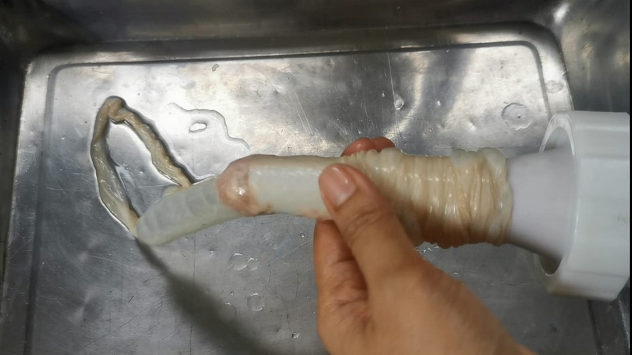 3. ทำความสะอาดไส้หมักเกลือ ด้วยการล้างด้วยน้ำ ทำด้านไหนและด้านนอก