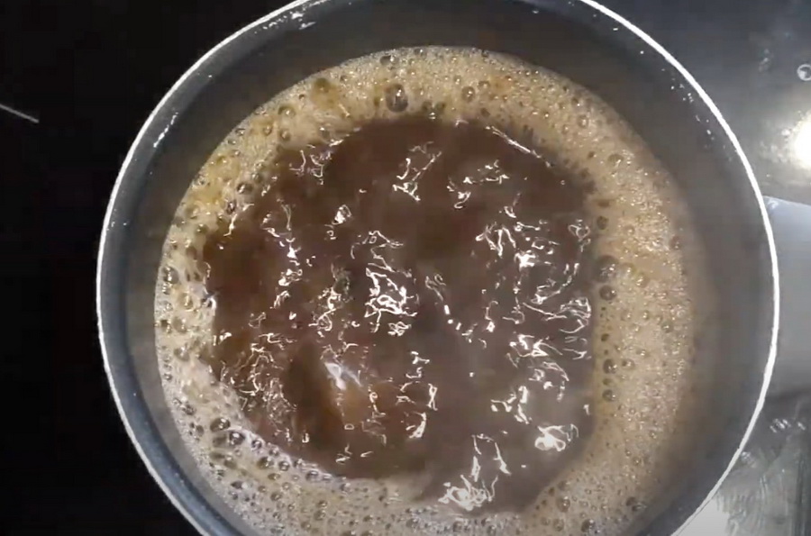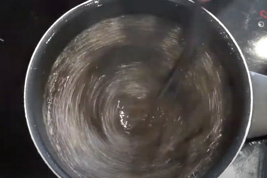 4. คนตลอดเวลานะคะ ให้ลิ่ม ๆ ละลายให้หมด คน ๆ ไปเรื่อย ๆ จนกว่าน้ำจะเดือดอีกรอบ