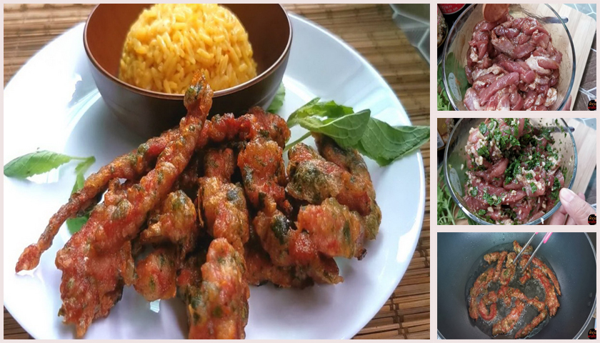 6. นำหมูลงชุบแล้วทอด ที่ไฟกลาง ไม่ต้องชุบแป้งให้หนานะคะ พอเคลือบ ๆ พอ
