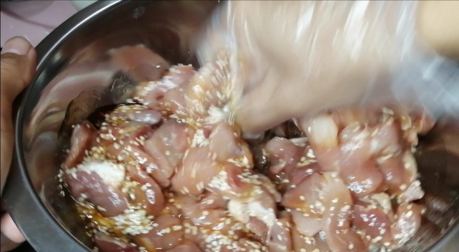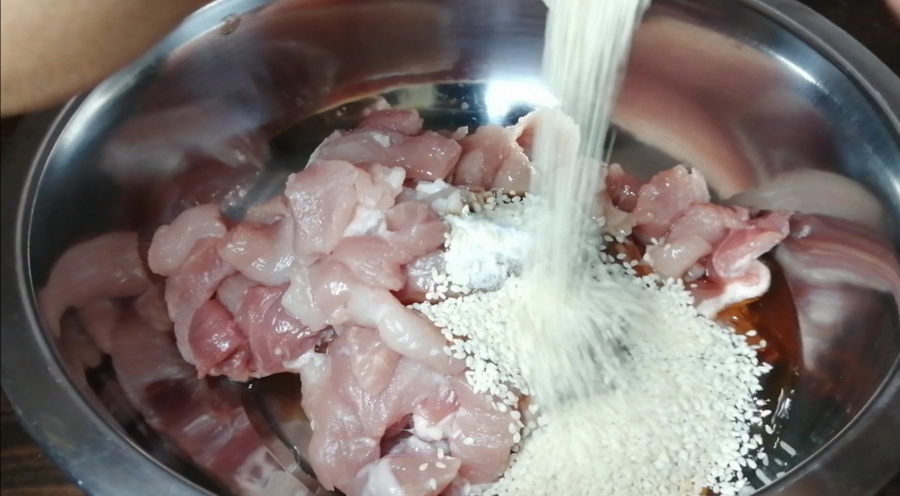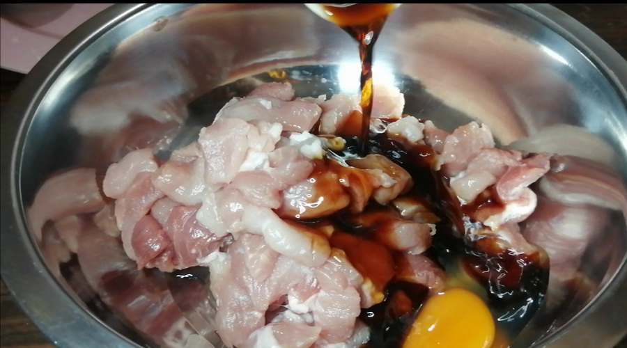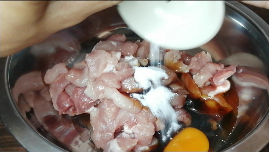 4. เบกกิ้งโซดา 1 ช้อนชา (เบกกิ้งโซดาอย่าใส่เยอะ ถ้าเยอะไปจะทำให้หมูมีรสชาติเฝื่อน)