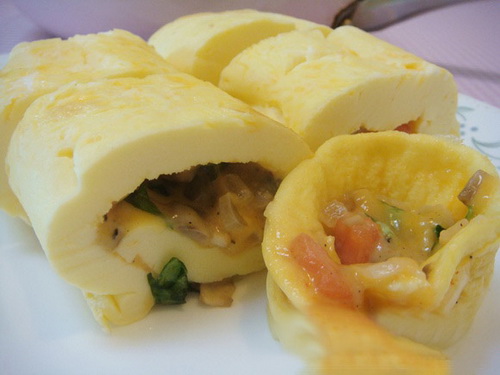 ใช้ไข่เจียวแผ่นมาห่อแทนแป้ง ยัดใส้ต่างๆ ลงไป อร่อยแล้วยังช่วยลดน้ำหนักได้ด้วยนะ