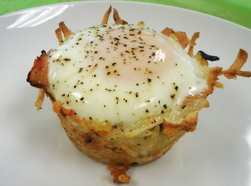 เมนูนี้เราต้องเลือกวัตถุดิบที่จะนำมาทำเป็นตระกร้าก่อน ตัวอย่างนี้ใช้เบคอนมาหั่นให้เป็นเส้นๆ วางสลับทับกันไปแล้วนำไปย่างให้พอหอม จากนั้นจัดการห่อฟอยให้เป็นทรงกรวยคล้ายตระกร้าพร้อมกับตอกไข่ใส่ลงไป นำเข้าเตาอบก็เป็นที่เรียบร้อย