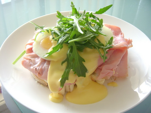 สลัดปกติจะมีไข่ต้มมาให้ เราก็เปลี่ยนเป็นไข่ดาวทอดไฟอ่อนๆ แทน แล้วก็เอามาโปะหน้าสลัด กินคู่กับซอสครีมชีส