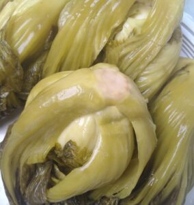 8.ตั้งไว้ในอุณหภูมิห้องประมาณ 5 วัน ผักก็เริ่มเปรี้ยวแล้วค่ะแต่ถ้าใครชอบเปรี้ยว ๆ ก็ดองต่อไปได้อีกค่ะ เพียง 7 – 10 วัน ผักจะมีความเปรี้ยว