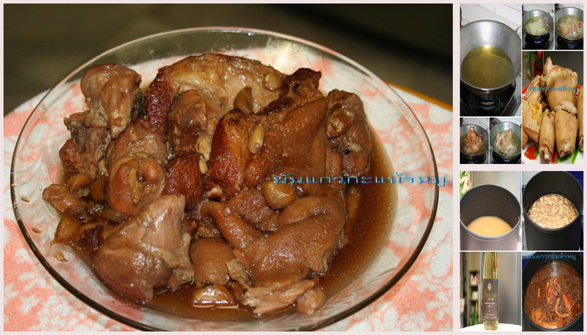 โดยความแตกต่างกับการใช้หมูสามชั้นก็คือ เวลาที่ใช้ในการต้ม  ถ้าเป็นขาหมูต้อง 3 ชั่วโมงครึ่งถึงจะเปื่อยยุ่ยเข้าเนื้อ