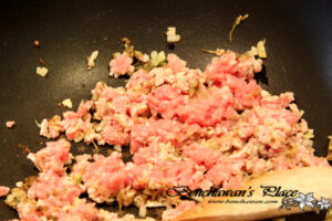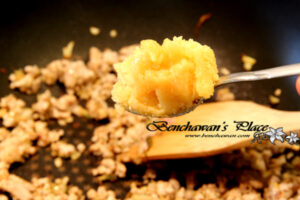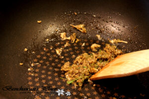 4.ใส่หมูสับลงไปผัดต่อให้สุก