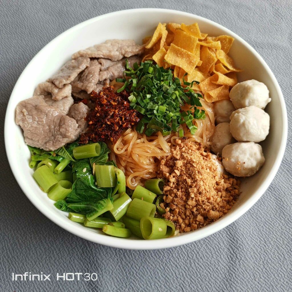 เวลาอยากกินก๋วยเตี๋ยวแห้ง ก็หาเส้นก๋วยเตี๋ยว เนื้อสัตว์และผักสดมาลวกแล้วคลุกได้เลยค่ะ