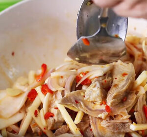 แค่นี้ก็จะได้ยำหมูนุ่มพริกเ ผา ยอดมะพร้าว รสชาติเปรี้ยว หวาน มัน น้ำกะทิ ทานกันในบ้านแล้ว
