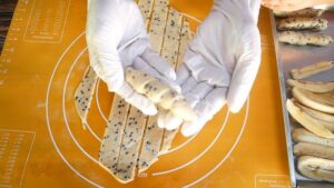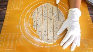 6. ตัดแป้งเป็นเส้น ขนาดกว้างประมาณ 1 นิ้ว