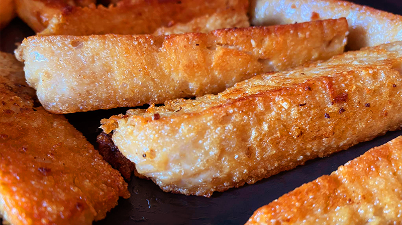 จากนั้นค่อยนำมาหั่นเป็นชิ้นพร้อมเสิร์ฟ