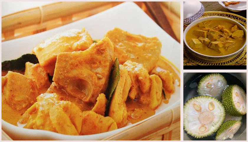 2. เอากะทิตั้งไฟ ใส่เครื่องที่โขลก พอหอมใส่ไก่ ขนุน น้ำปลา น้ำตาลปี๊บ