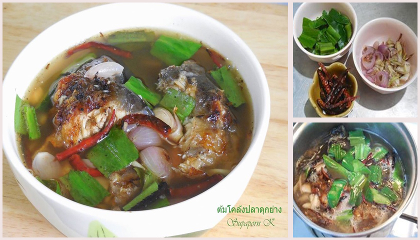 – ตั้งหม้อต้มน้ำ พอเดือด ใส่หอมแดง ข่า ตะไคร้ และหัวปลาลงต้มสักครู่ แล้วใส่ชิ้นปลาดุกย่าง ปรุงรสด้วยน้ำปลา น้ำมะขามเปียก ชิมรสตามชอบ ต้มให้เดือดดี (แต่อย่าต้มนานเพราะปลาจะเละ) หลังจากนั้นใส่พริกคั่ว ใบมะกรูด และผักชีใบเลื่อย พอผักสลด ยกลงจากเตา ตักใส่ถ้วย ทานกับข้าวสวยร้อนๆ อร่อยมากค่ะ